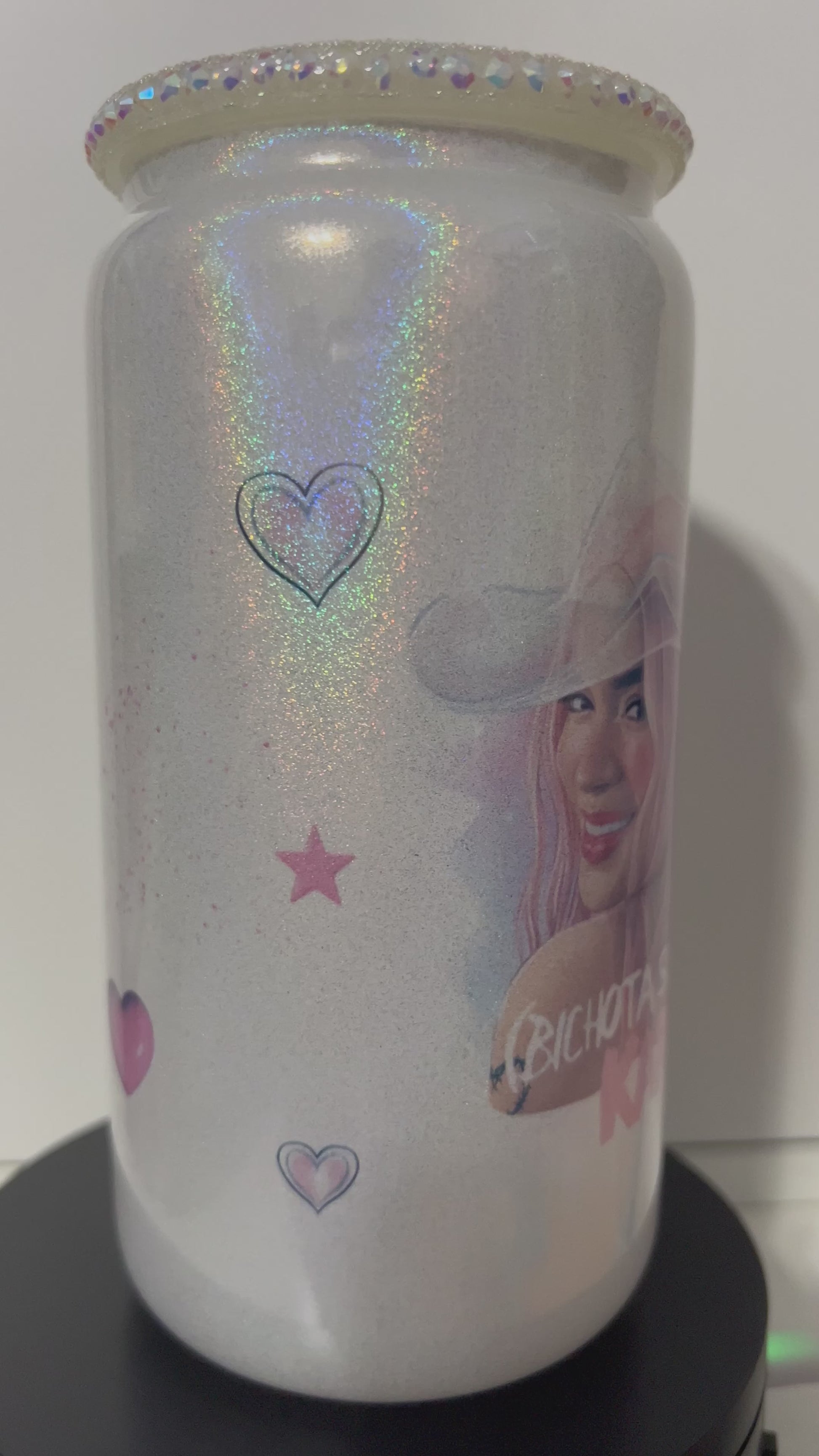 Karol G 16 oz White Shimmer Glass Can & Rhinestone Lid